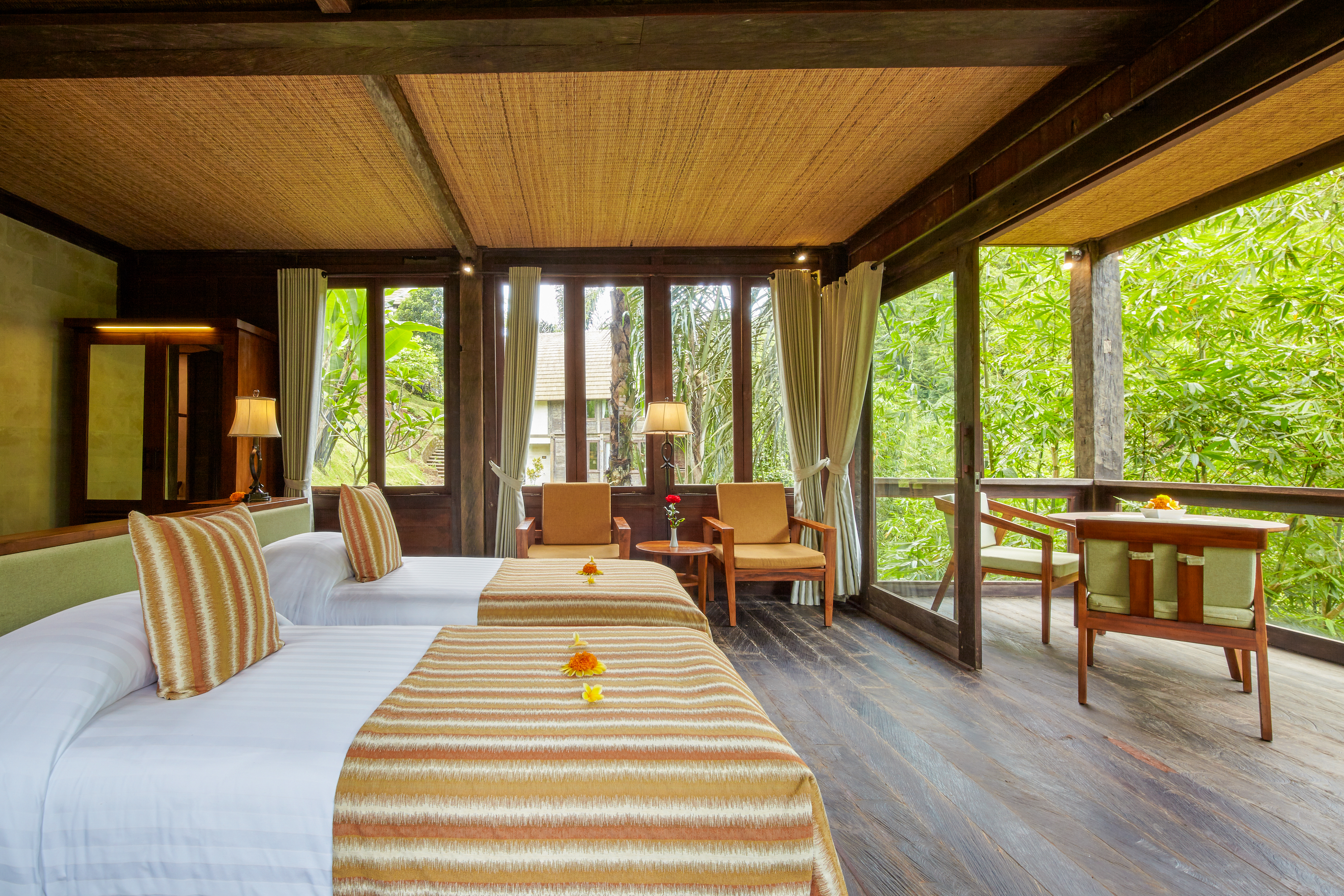 Perched on five lush acres of hillside just north of Ubud, your home for the week is an eco-luxury wellness resort designed for deep rest, renewal, and reconnection with nature.