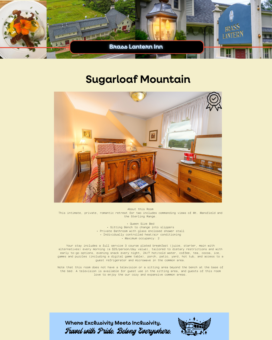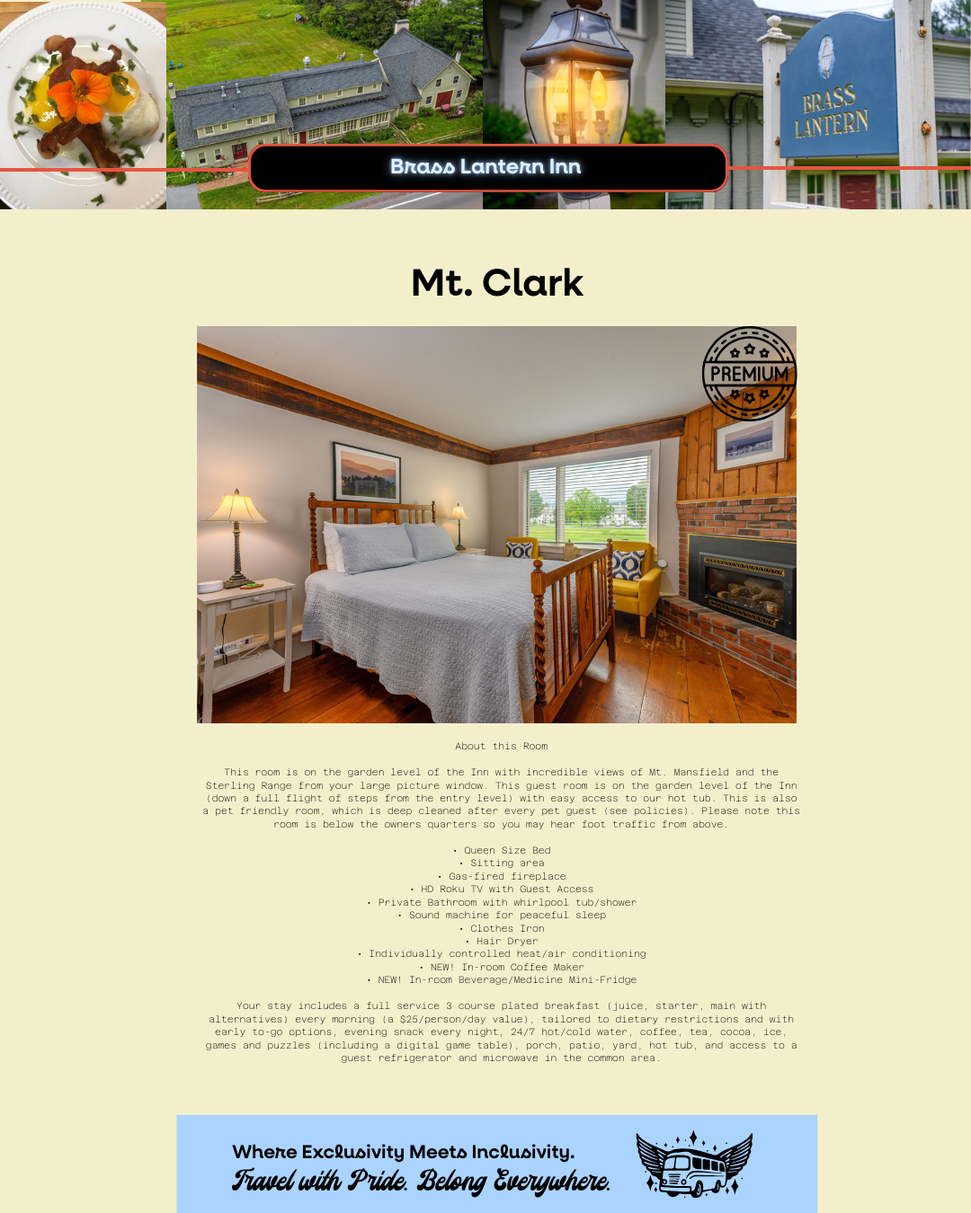 Yes! The Brass Lantern Inn has 9 unique rooms—each with its own charm, size, and layout. When booking, you’ll choose your preferred room based on its offerings and availability.