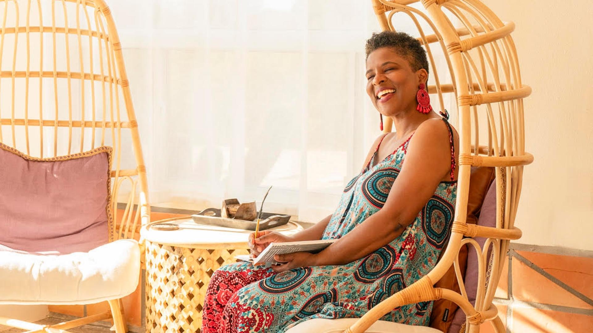 You're surrounded by tall trees, fresh air, and sacred silence that holds you like a prayer. You journal what's been living in your chest for years. You cry and feel lighter. You laugh and feel more like yourself.